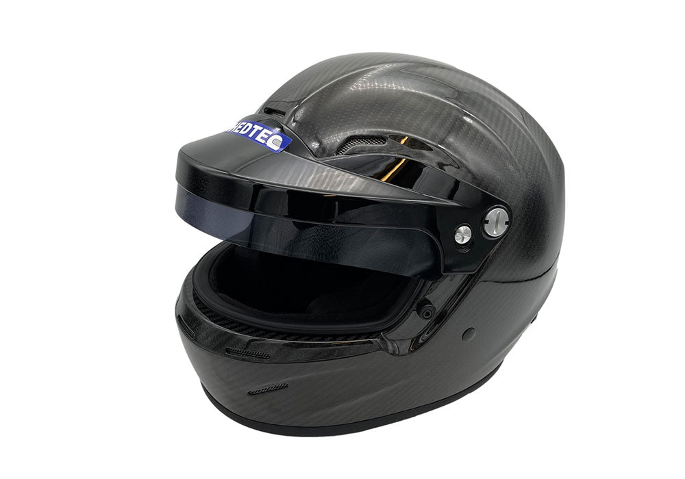This Helmet comes with a clear visor but a selection of coloured visors or the Touring Car Peak can be added as extras
